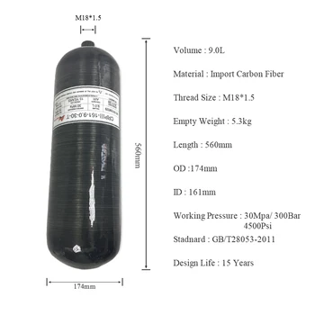 Product Name: ACECARE Air Softgun Pcp Tank Paitnball Carbon Air Tank 9L Schwarz 30mpa 300bar Zylinder Hochdruck Pcp Für Jagd AC3090